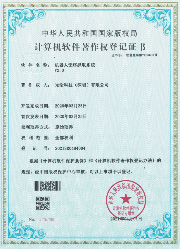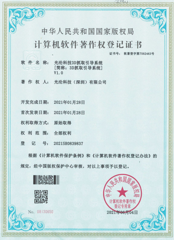 光淪科技工業機器人視覺相機獲得了多項國家專利及軟件著作權,公司自成立以來一直堅持自主知識產權研發工業3D相機!